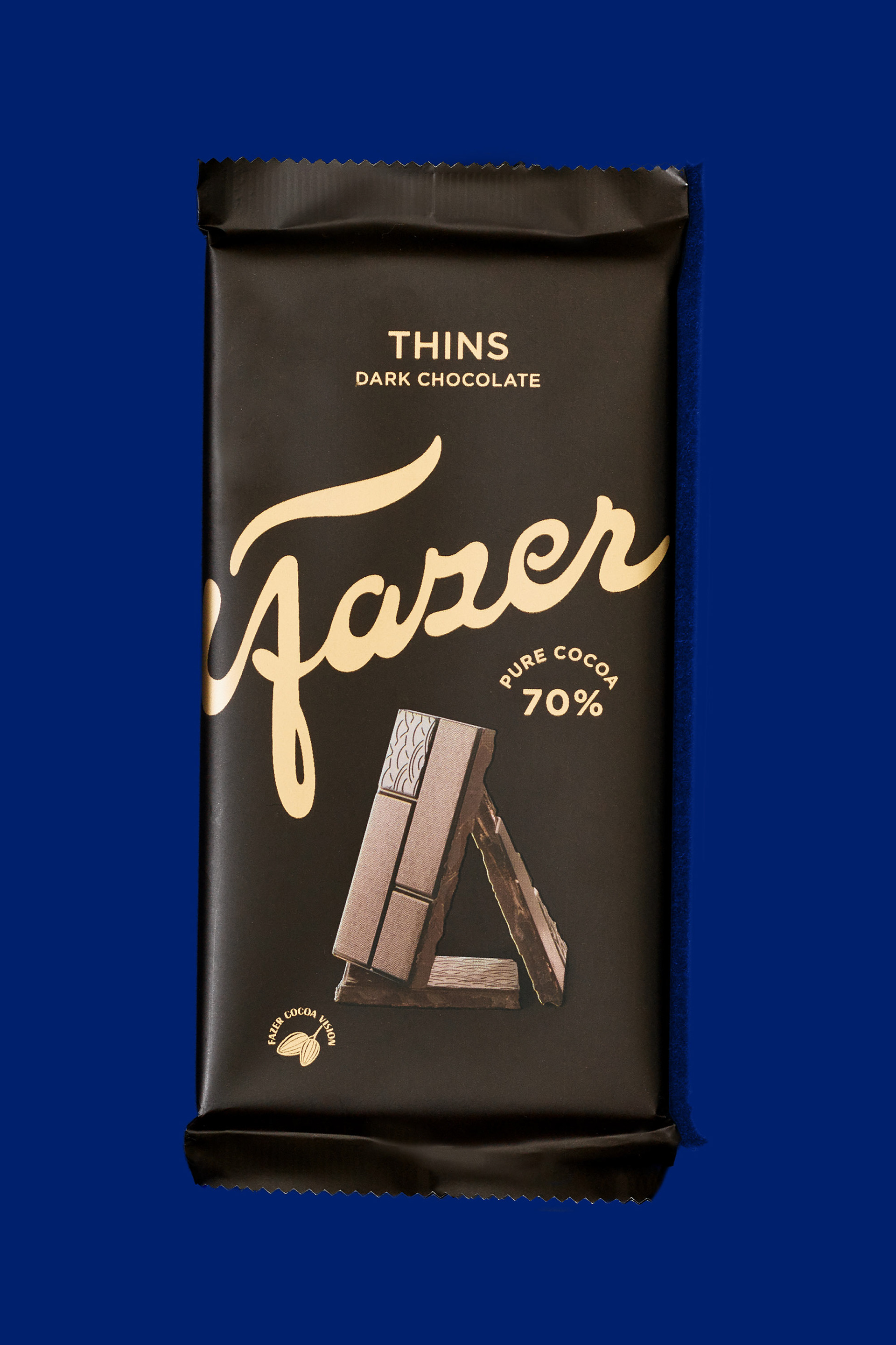 Karl Fazer, a Finnish beloved chocolate brand wanted to create completely new sub-category under the hero brand and revamp their outdated Pure Dark Chocolate packaging. Thins-series needed a fresh and premium look to attract new buyers. The new packaging design drew inspiration from the minimal elements Karl Fazer has, heavily relying on beautiful logo design, tasty product images and colors.